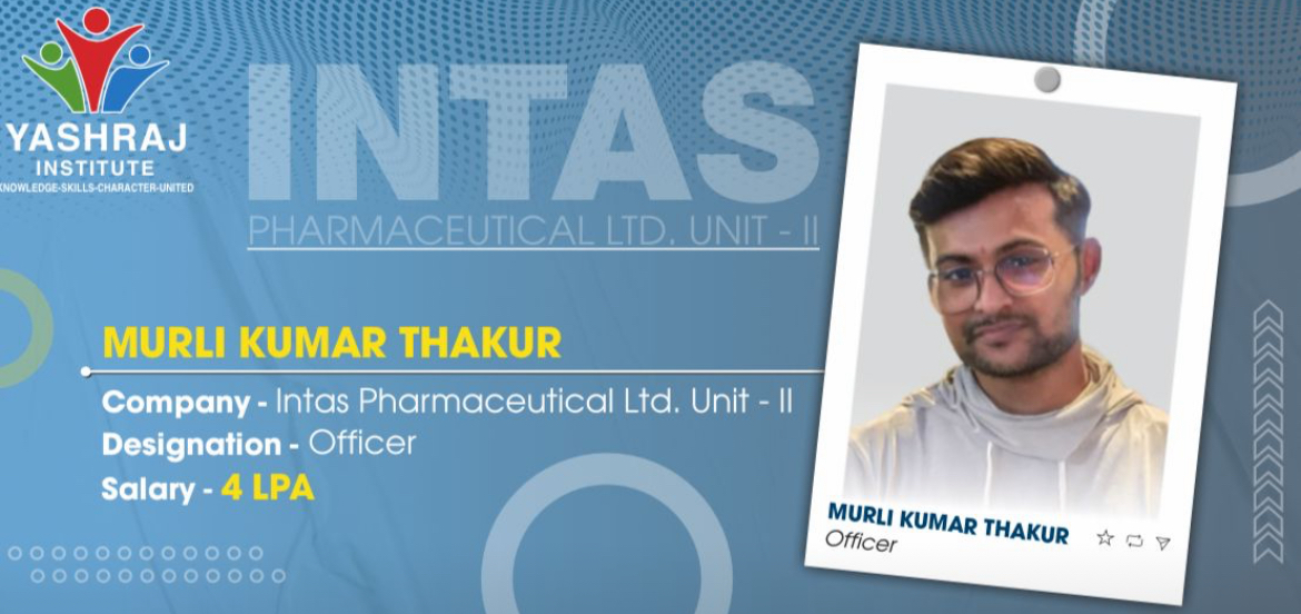 Yash Raj Institute of Pharmacy congratulates our outstanding students Murli Kumar Thakur, Saumya Srivastava, and Aman Kumar Tripathi on their successful campus placements.